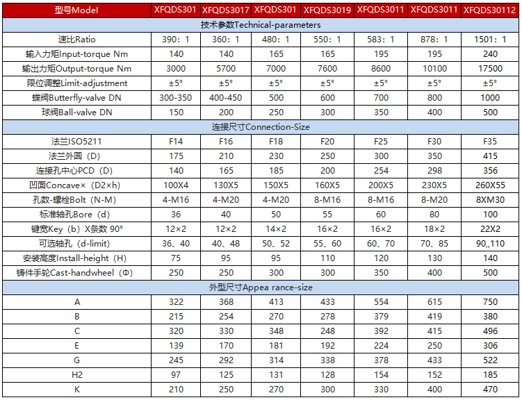 该系列蜗轮箱适用环境广、功能全面、形式多样(有手轮式、手轮带锁式等),产品共有7种型号。
