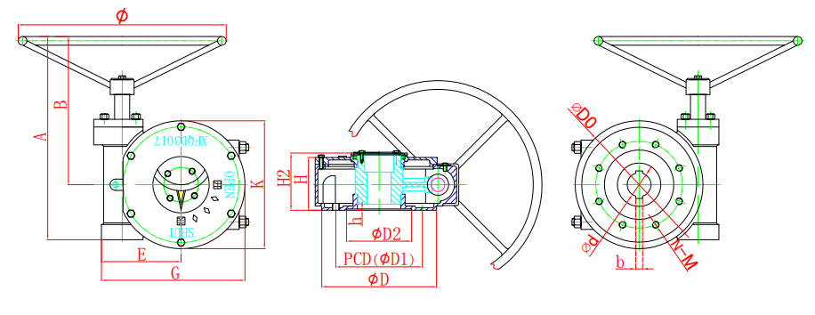 该系列蜗轮箱适用环境广、功能全面、形式多样(有手轮式、手轮带锁式等),产品共有11种型号。