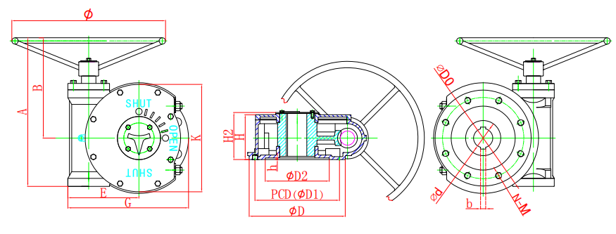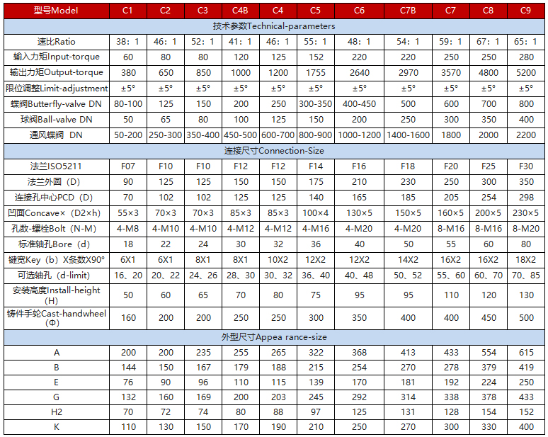 该系列蜗轮箱适用环境广、功能全面、形式多样(有手轮式、手轮带锁式、链轮式等),产品共有9种型号。