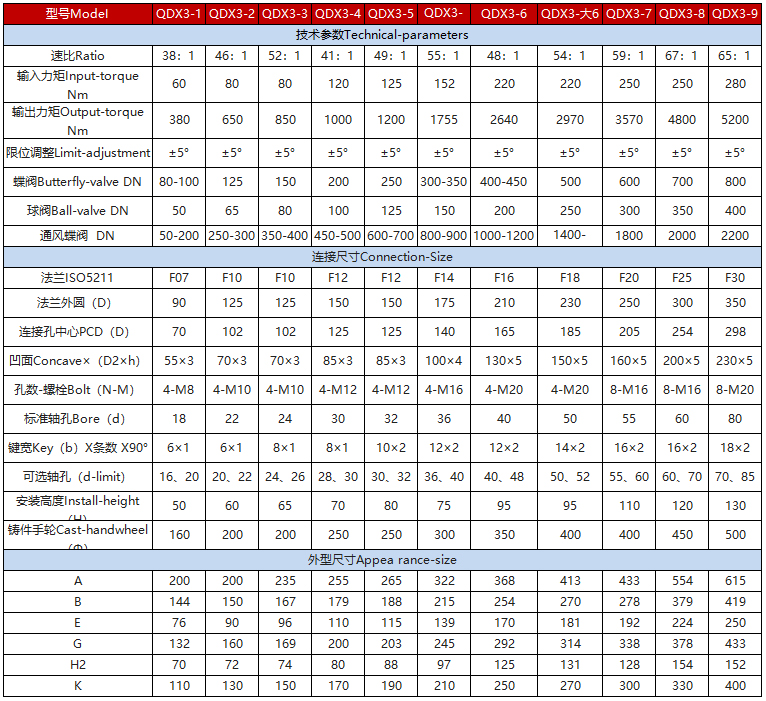 该系列是一款90°部分回转驱动装置,适用于球阀、蝶阀、旋塞阀等类型阀门。该系列蜗轮箱适用环境广、功能全面、形式多样(有手轮式、手轮带锁式、链轮式等),特殊型可输出360°多回转。产品共有9种型号。