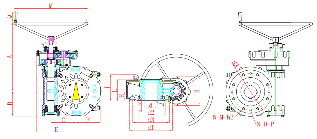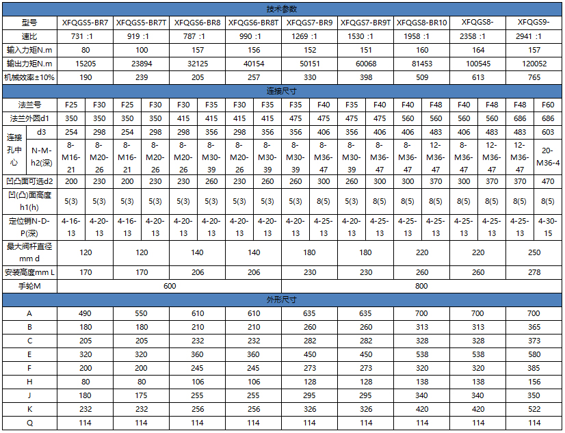 输入小力矩,开动大阀门,使操作人员省力,每种型号提供多个传动比,能更好的匹配不同规格的阀门。