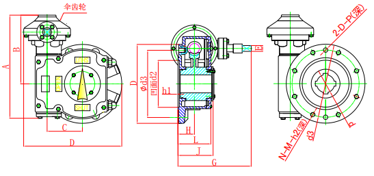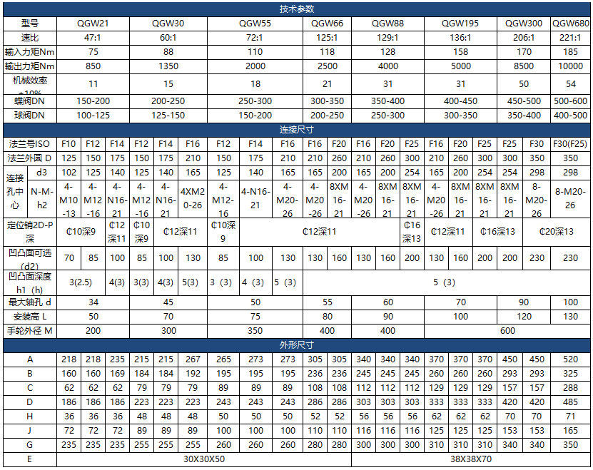 输入小力矩,开动大阀门,使操作人员省力,每种型号提供多个传动比,能更好的匹配不同规格的阀门。