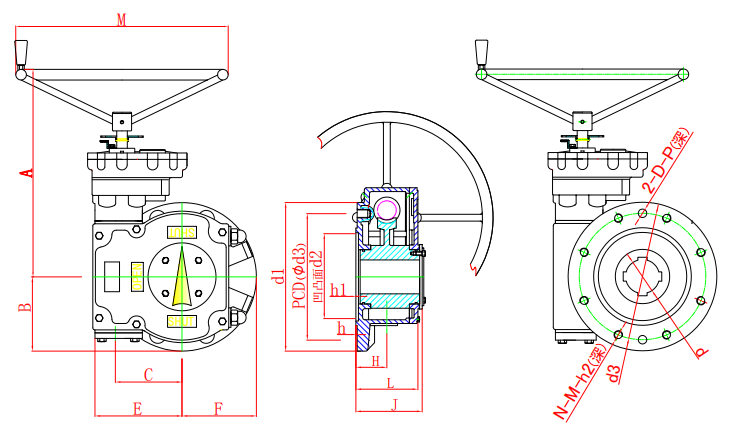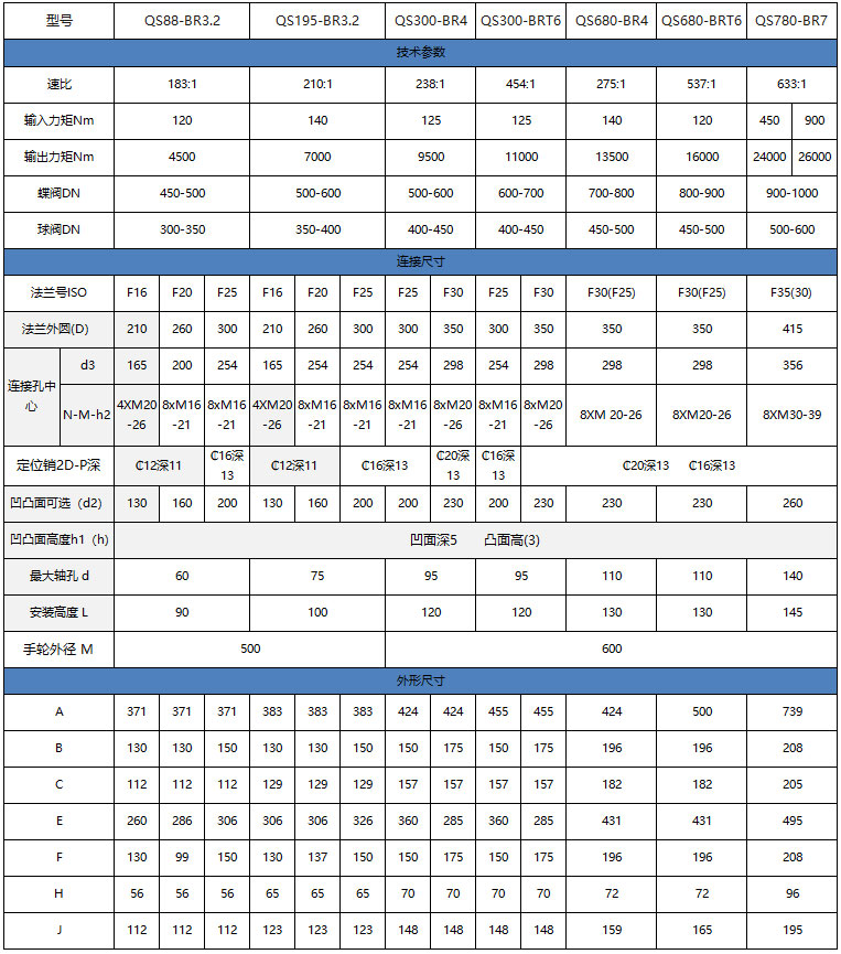 输入小力矩,开动大阀门,使操作人员省力,每种型号提供多个传动比,能更好的匹配不同规格的阀门。